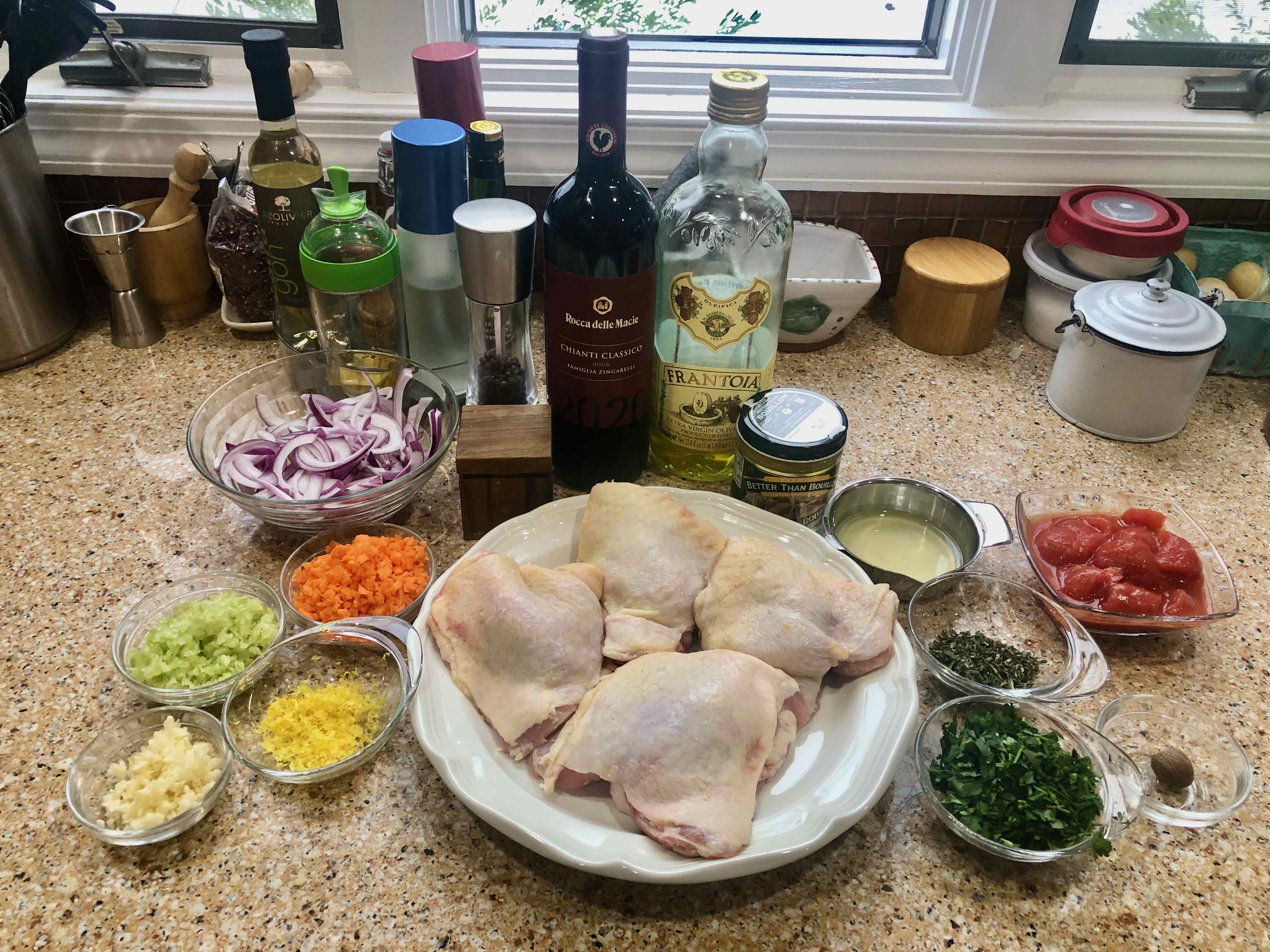 Yet despite my rant over its attribution, the recipe yields an exceptional dish that exceeded my expectations. Like other recipes in the book, it is sourced from an Italian grandmother whose cooking preserves the traditions of her region. This particular nonna, Emma Grassi Bensi, hails from Tuscany and, as Fields points out, her “addition of nutmeg and grated lemon zest gives the sauce an elegance beyond its rustic beginnings.” In fact, those two ingredients differentiate this dish from so many other Italian chicken stews like cacciatore, where peppers, tomatoes, and spice dominate the flavor profile. The refinement in this dish might also be attributed to the slow cooking of the aromatics and the judicious use of herbs. Likewise, rubbing the chicken with the juice from half a lemon adds a welcomed savory note to the dish and seems to extract more flavor from the poultry.