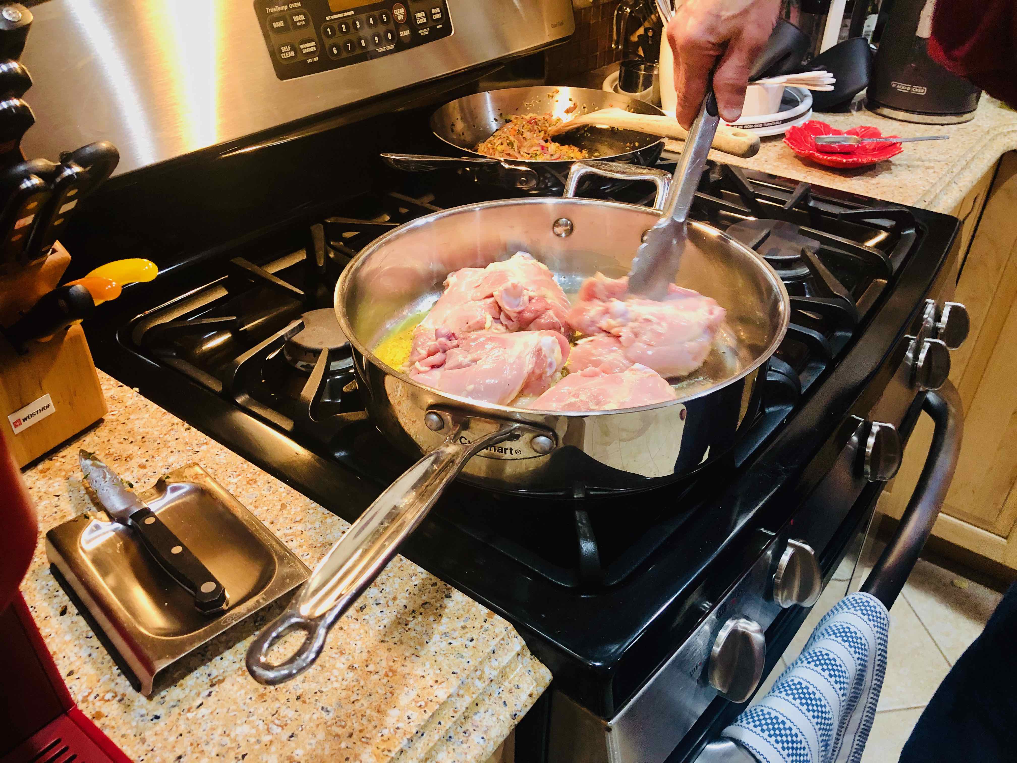 Sautéing the chicken
