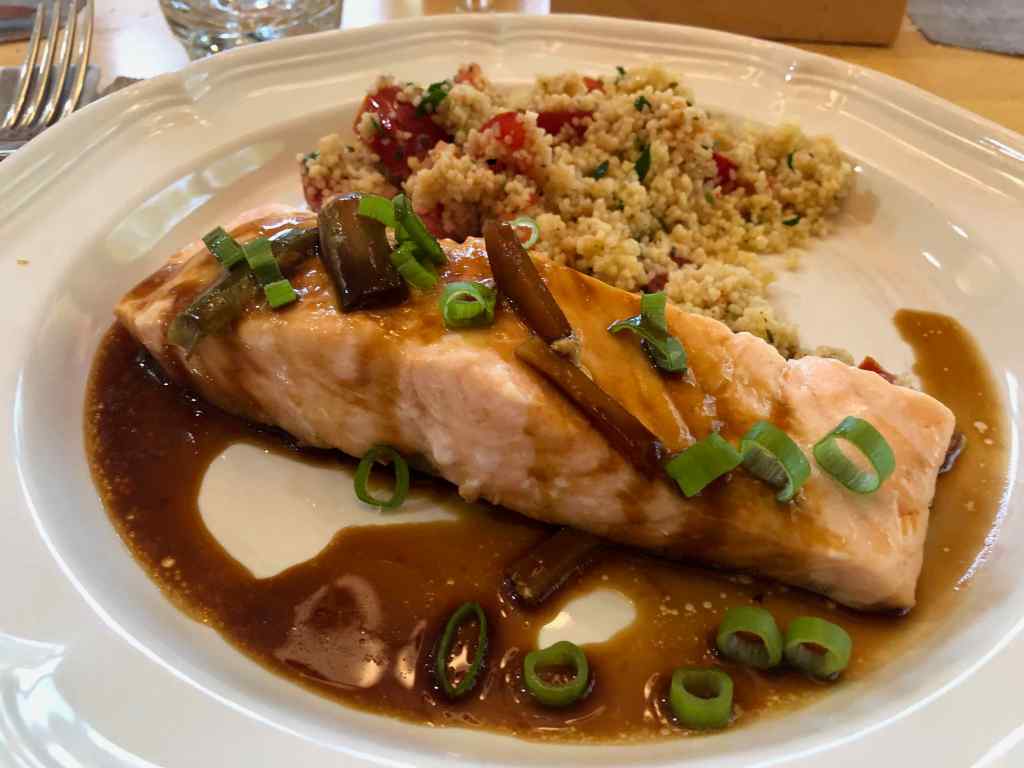 Although I’m fearless when it comes to preparing seafood, I wince when it comes to cooking fresh fish. But every so often, I come across a recipe that prompts me to face my fears and take on one of those scaly creatures. I must admit, however, that having skinned and sliced salmon fillets makes the feat far less daunting.