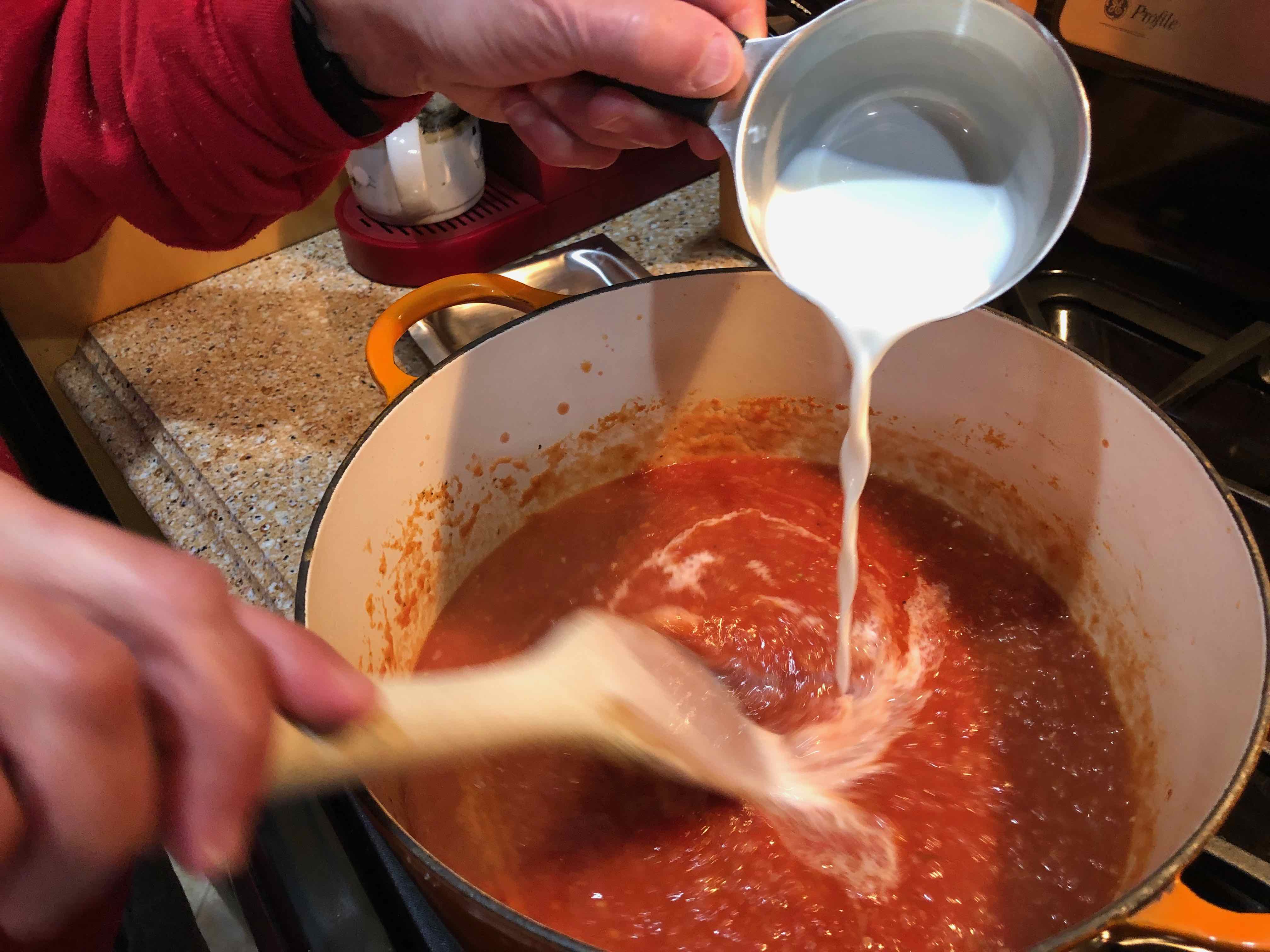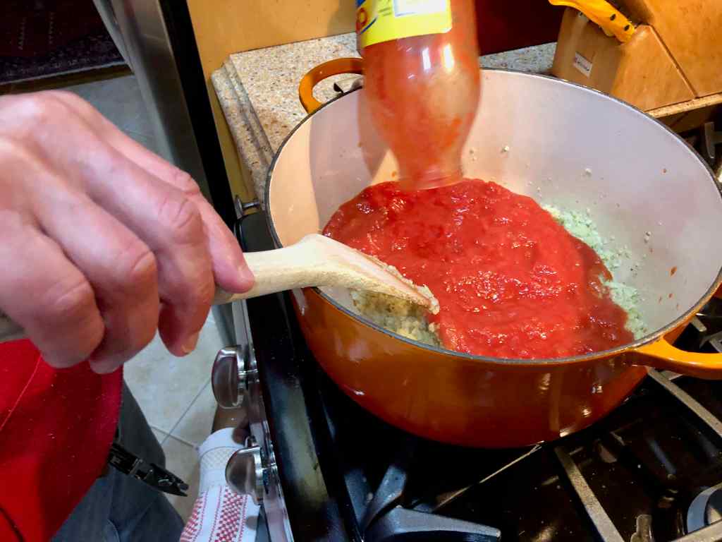 3. Add the tomato passata and then half-fill the empty bottle with cold water (approx. 1¼ cups water).
