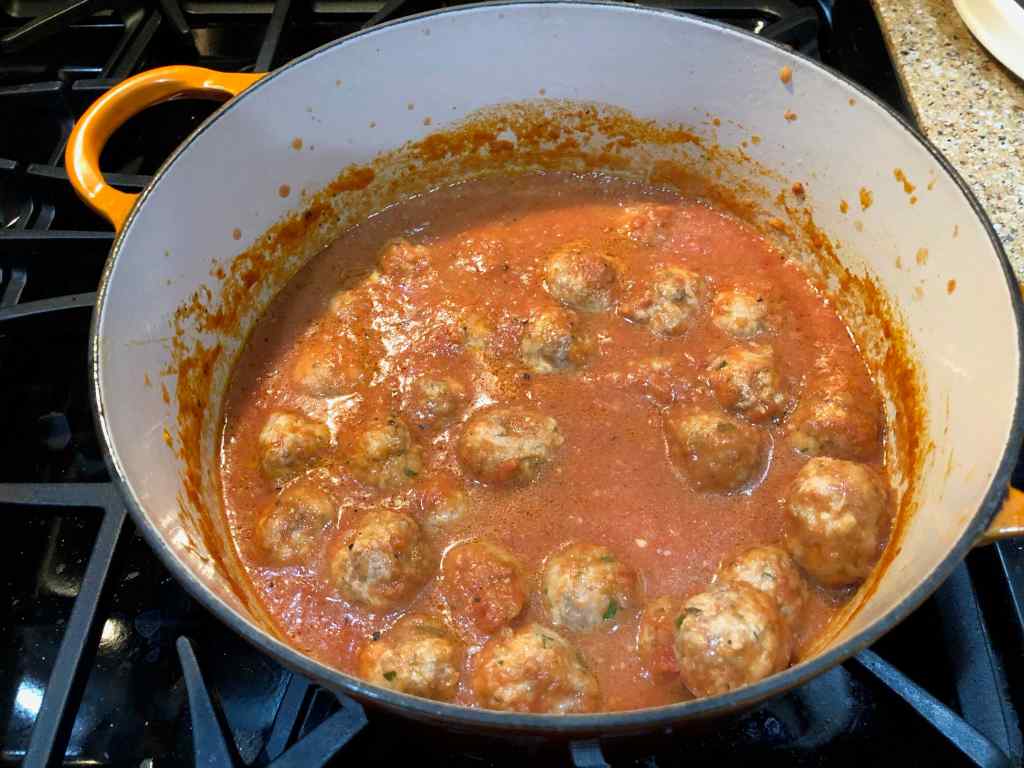 Except for using fresh parsley instead of dried oregano in the meatballs and foregoing sugar in the sauce, I pretty much followed the recipe as written. That it requires a minimum of prep and only 30 minutes of cooking time makes it a perfect dish for week night meals. Moreover, its elimination of either shallow frying, broiling, or oven roasting the meatballs before cooking them in the sauce, renders it even more attractive for entertaining.