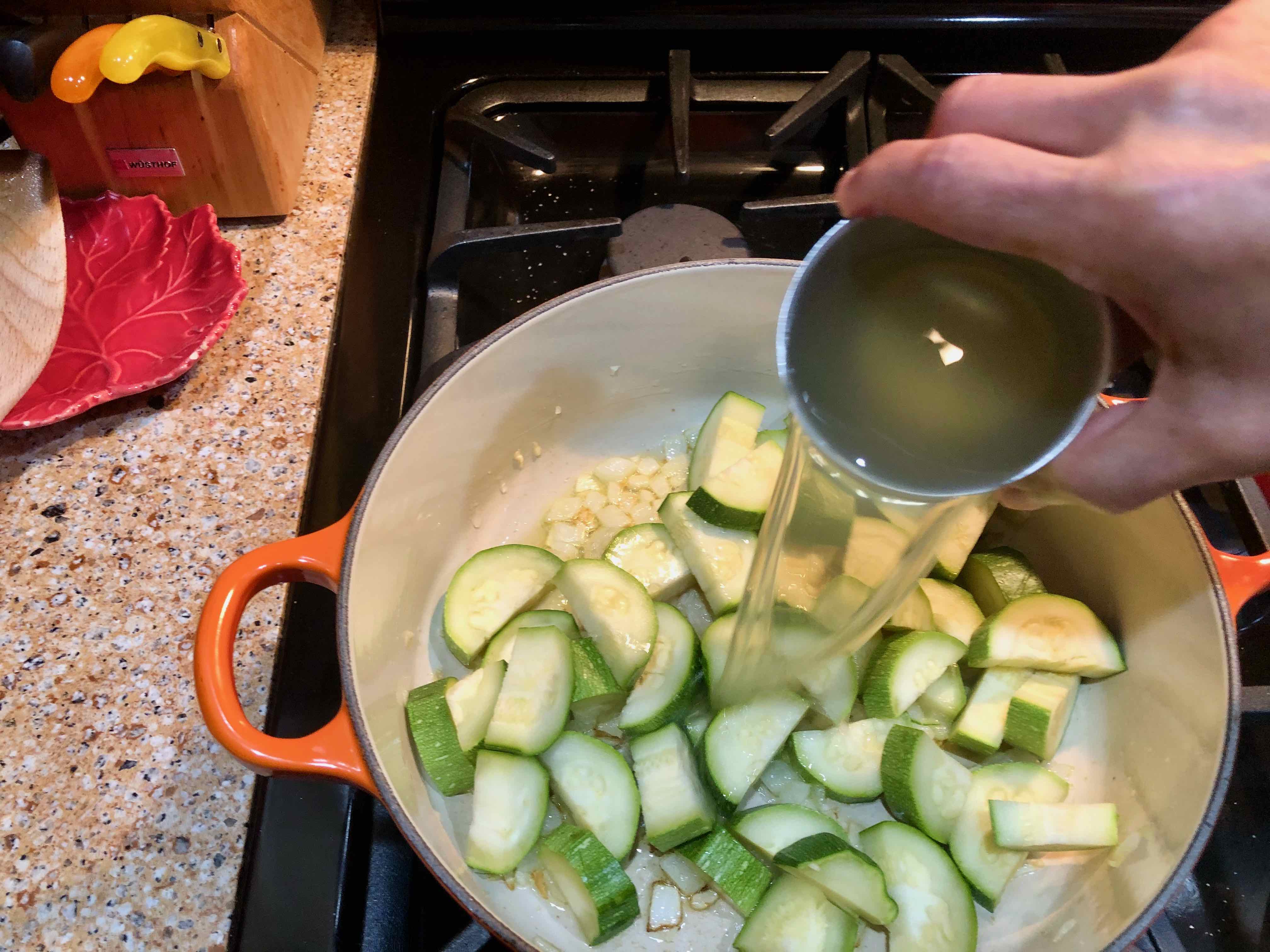 3. Cover the pot, reduce the heat to low, and simmer for about 20 minutes, or until the zucchini are soft and cooked.