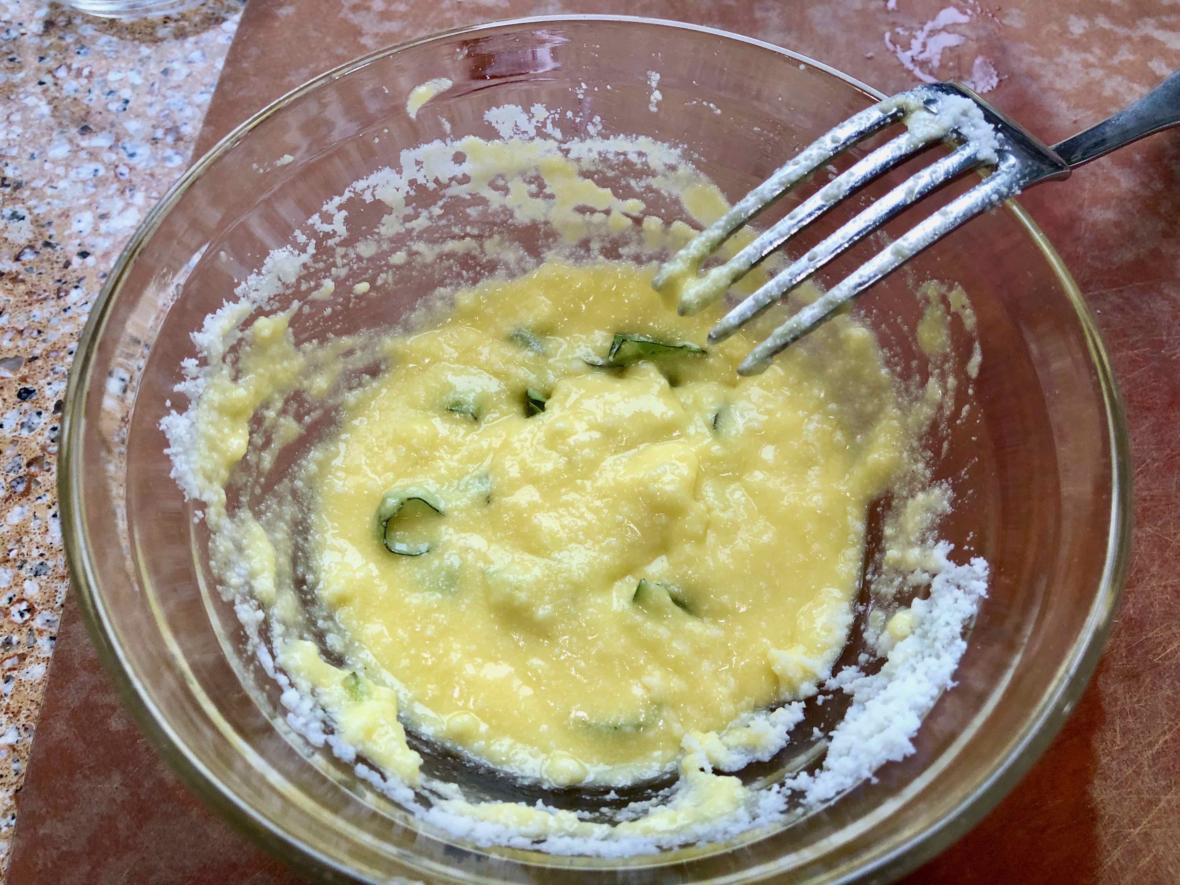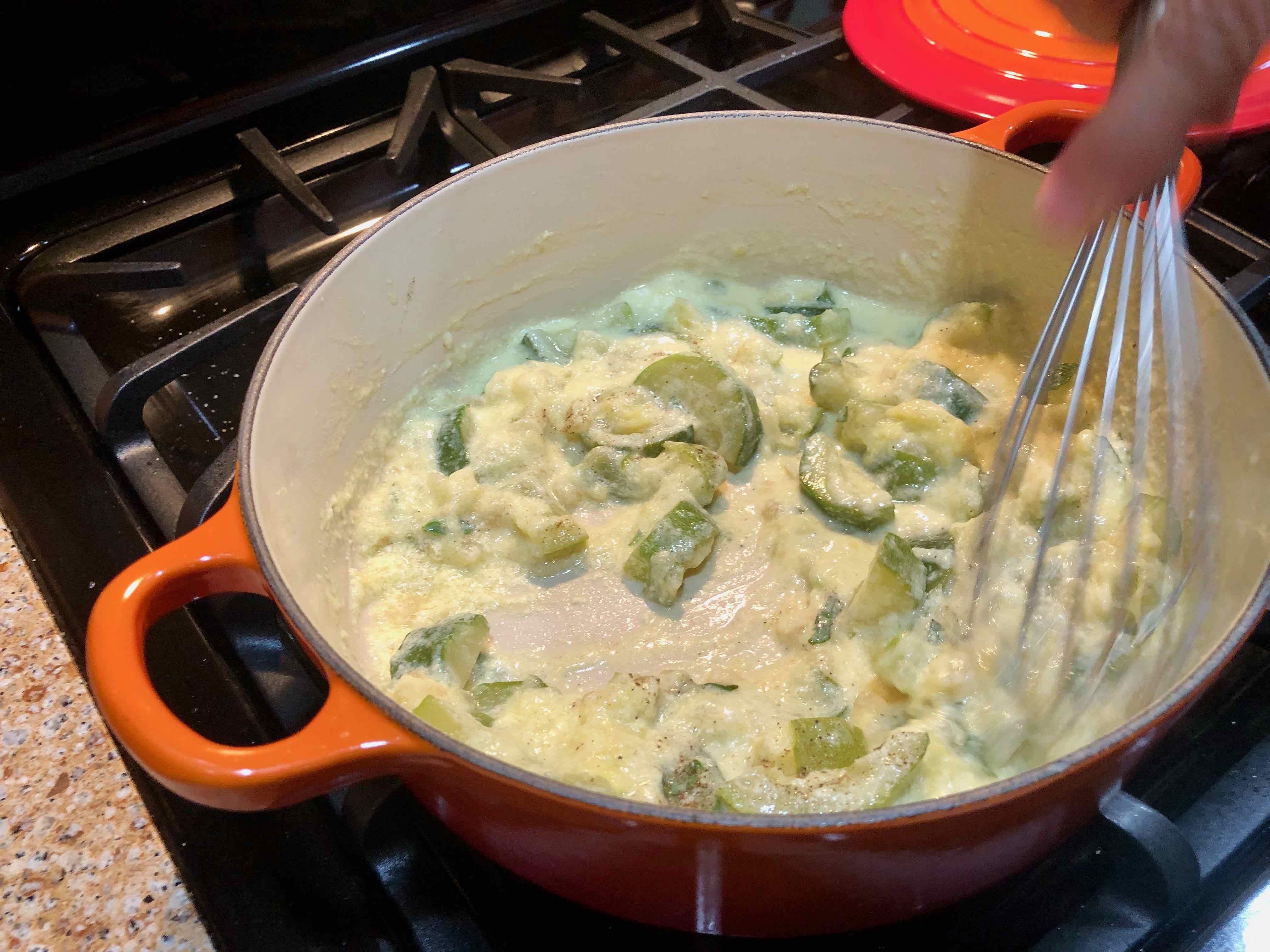 5. When the zucchini are done, turn off the flame, whisk in the beaten egg, cheese, basil, and add salt and pepper to taste.