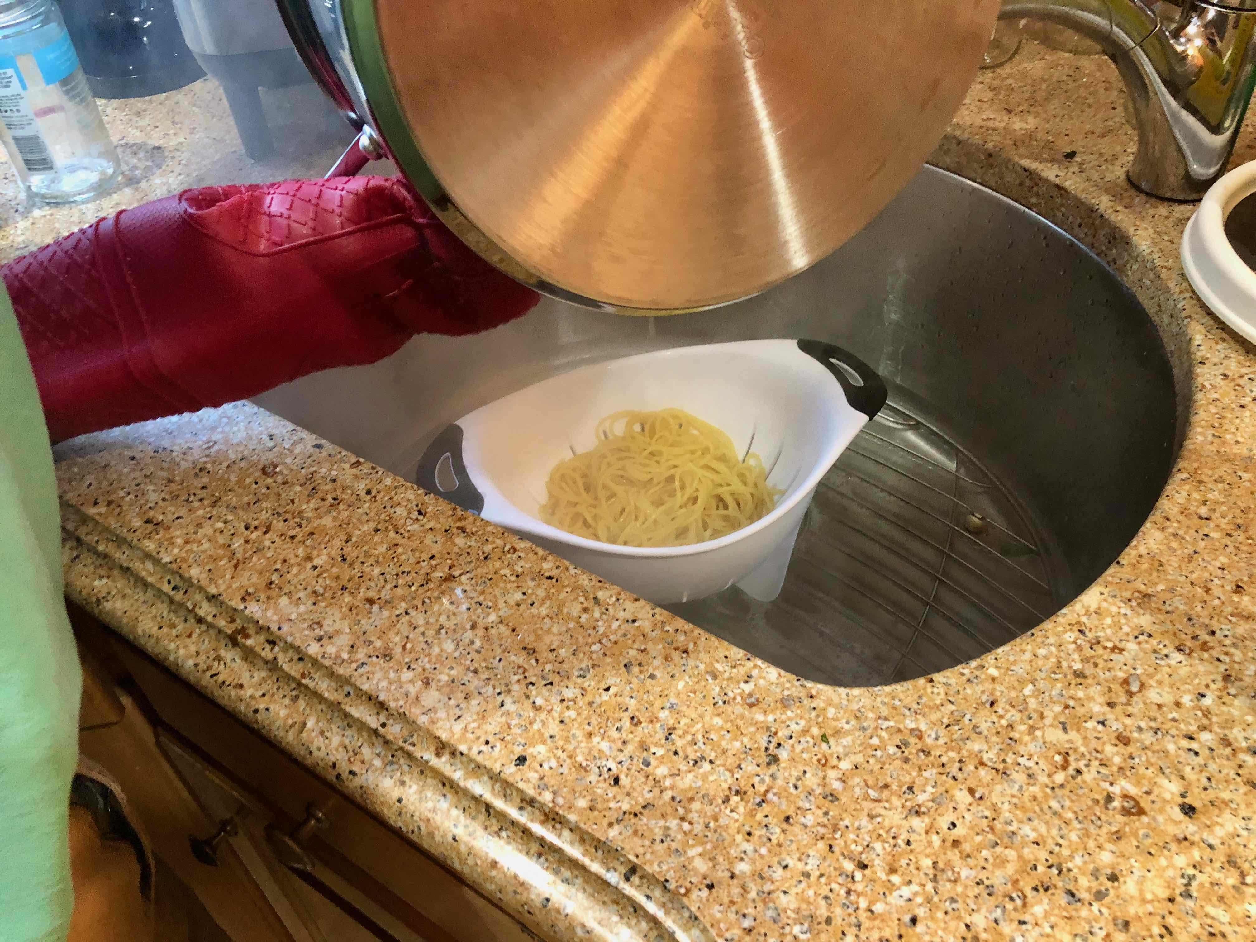Transferring pasta to a colander