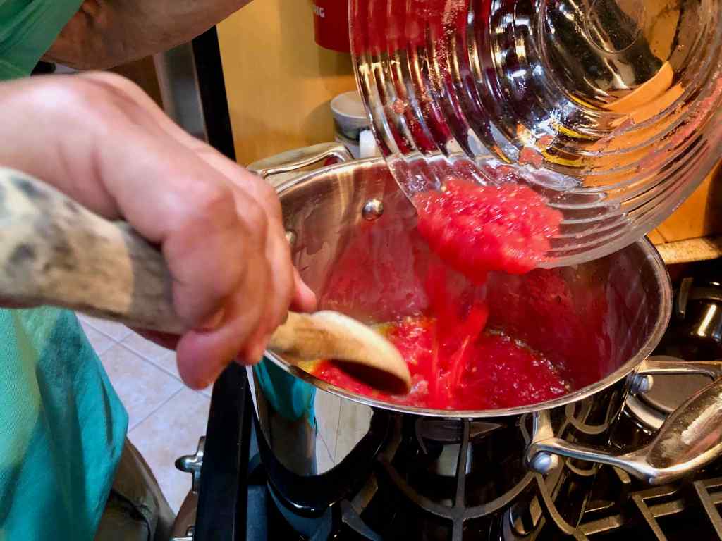 I’ll definitely make this dish again as tomato season winds down, but will probably add just a pinch of pepperoncino to satisfy our yen for spice.