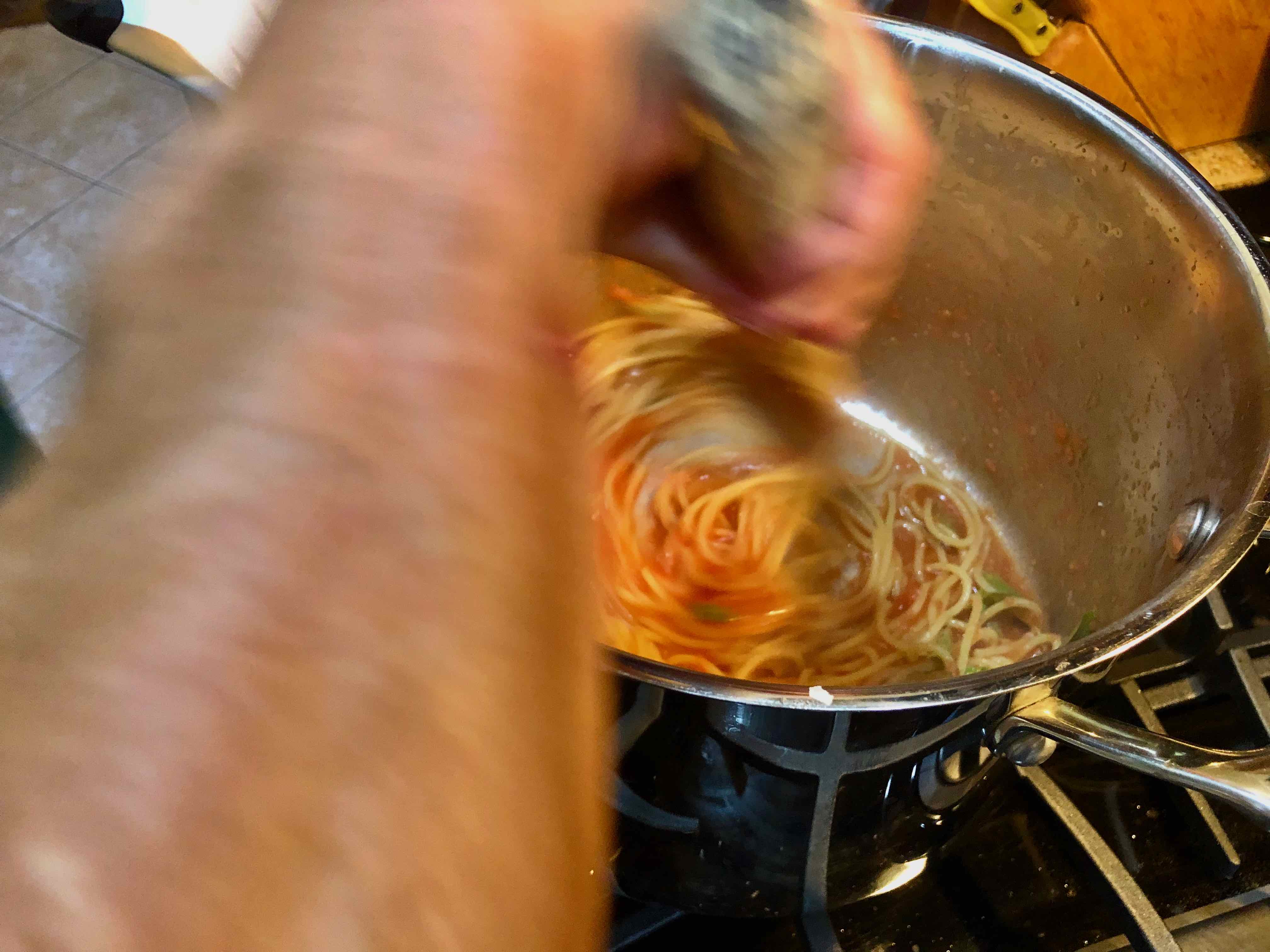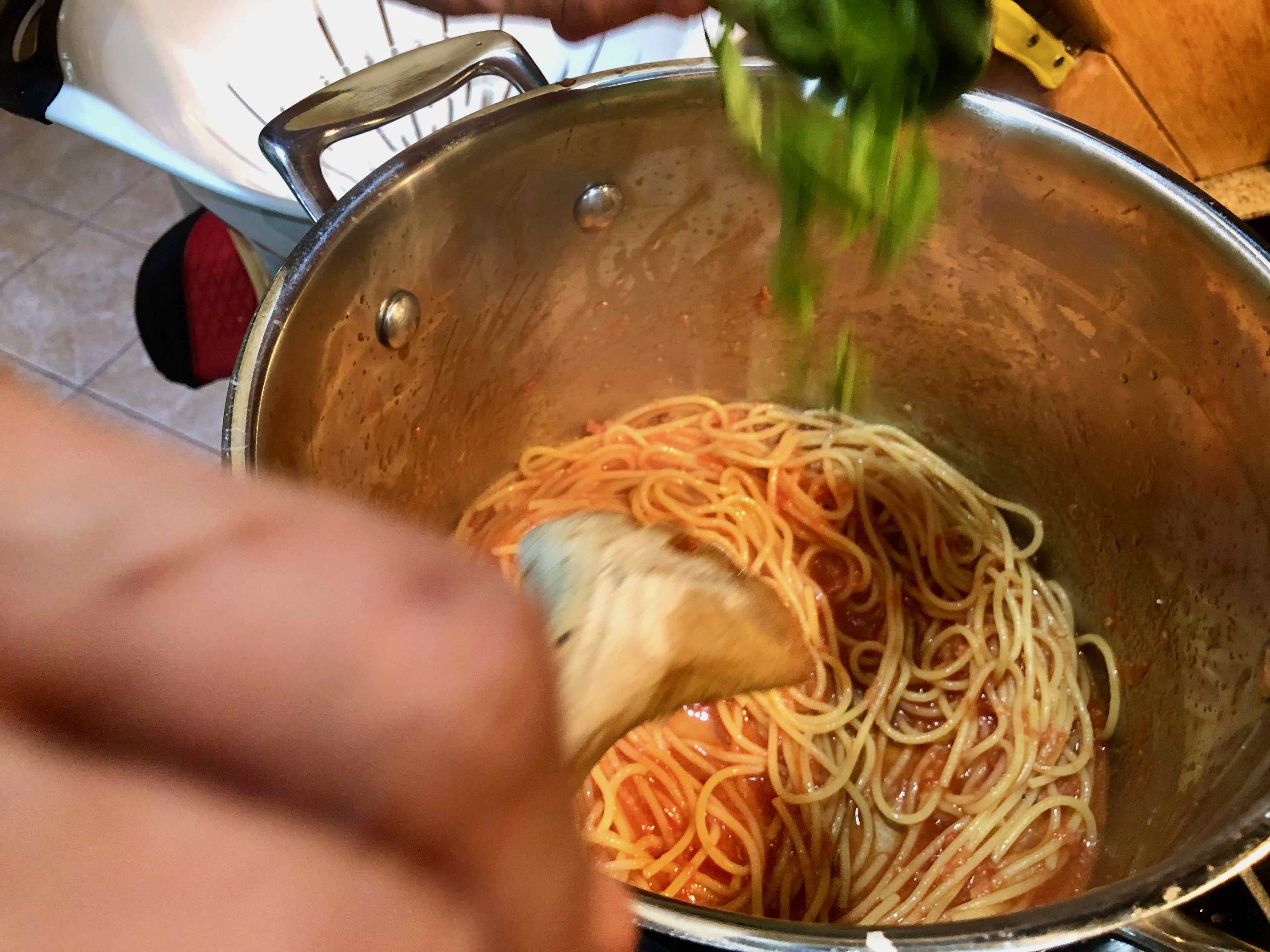Adding the pasta