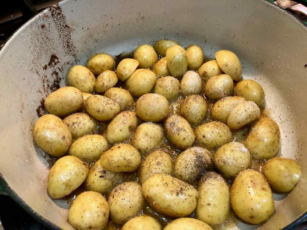 1 ½ pounds Yukon Gold potatoes (about 4) quartered lengthwise (I substituted 1½ pounds little potatoes halved lengthwise.)