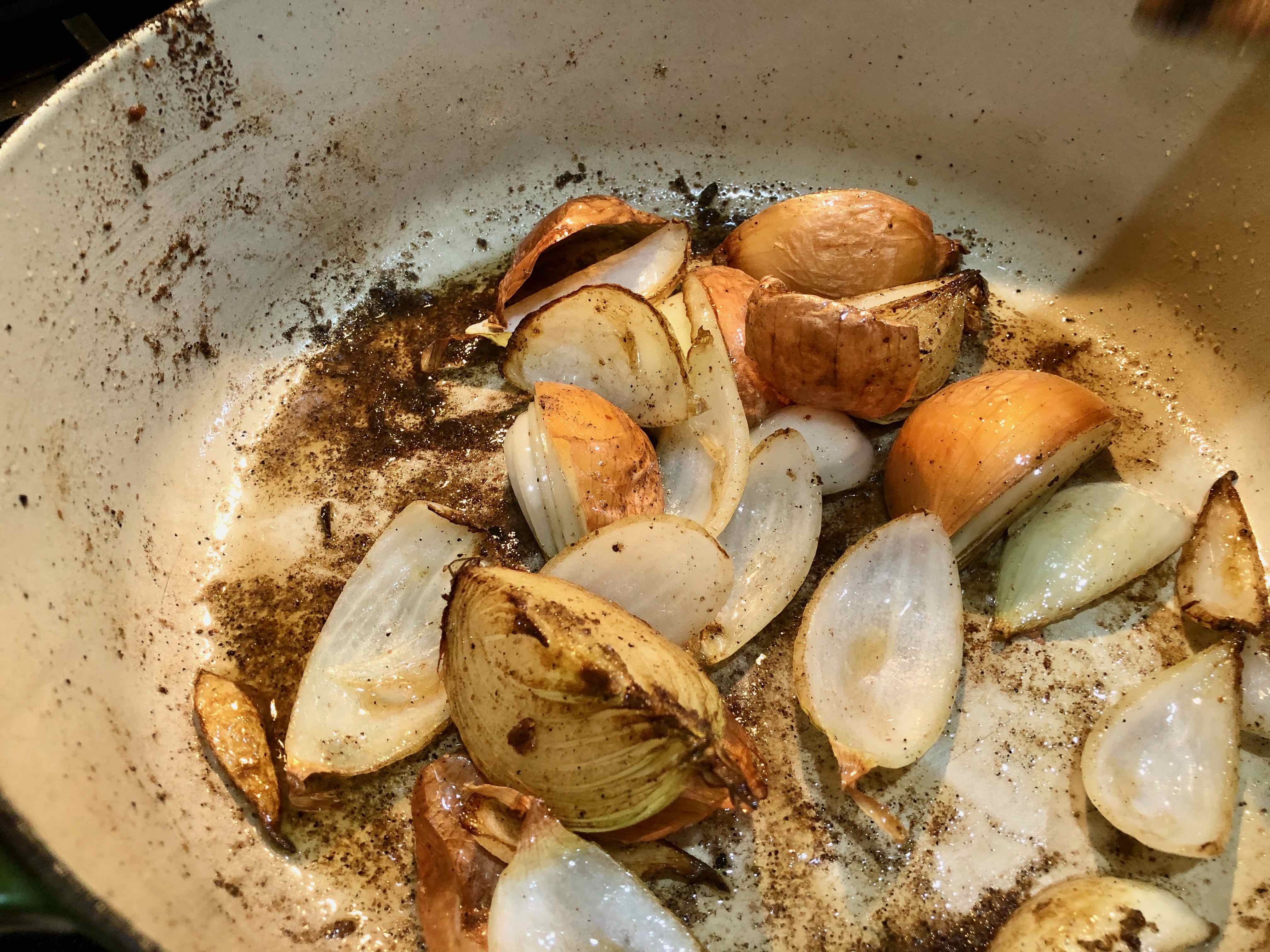 The dish looks wonderful, and I intend to try it! Did you leave the skin on the onions? If so, does it stay in place during the braising?