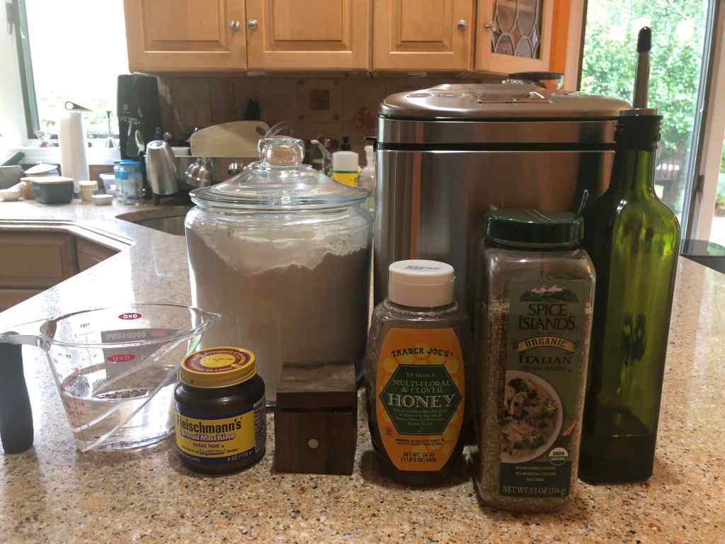 1. Add the ingredients to the bread machine’s baking pan in the order listed, starting with the water and ending with the yeast.