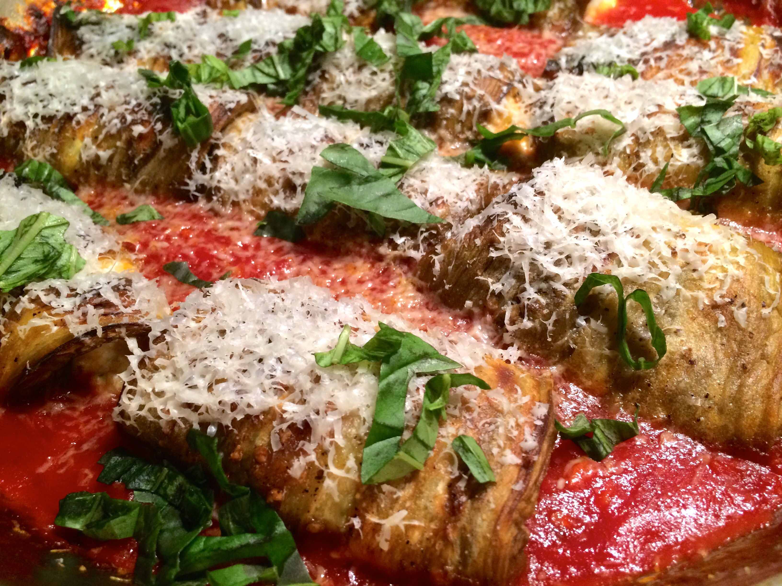 Eggplant Parmigiana was definitely not a favorite dish of mine when I was growing up. Nevertheless, it was often on our table for dinner, and I was thankful that it was there only as a side dish, so I could get away with having only a “teeny weeny” slice alongside the main course.