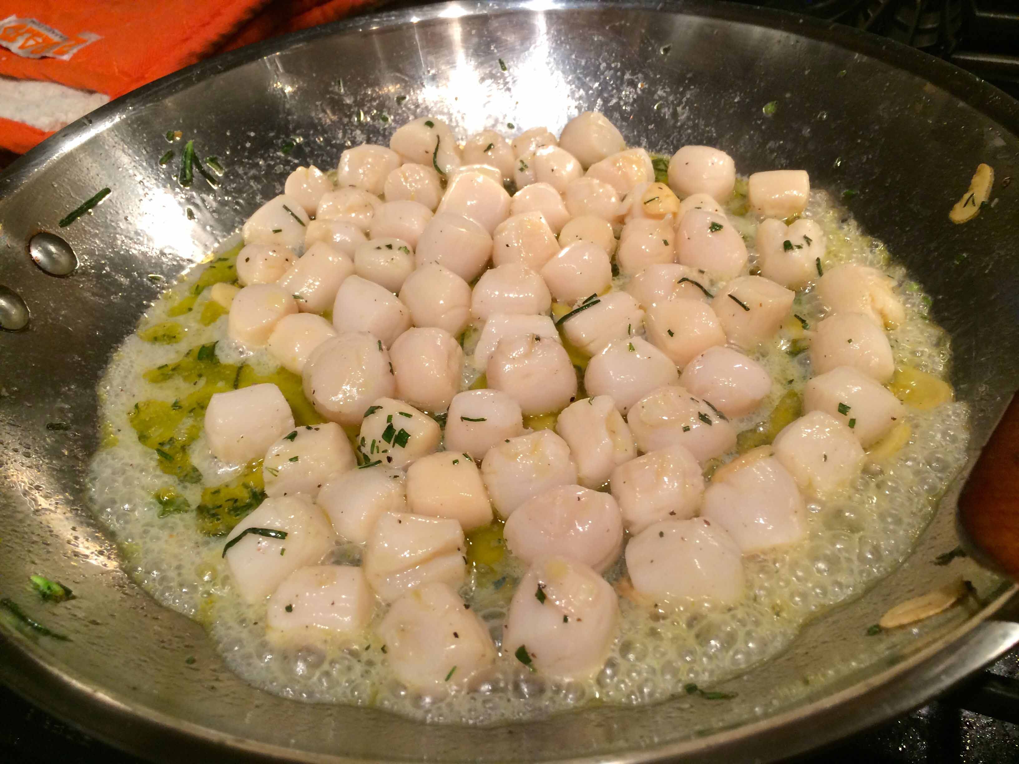 Last Friday, I made them for the first time at home and thought they were as good as almost any I had ever had out. The key to searing them correctly is patience: leave them alone after they hit the pan. Don’t move them or shake the pan. Just let them take on a nice sear, which they will after approximately 3 minutes. Then flip them and do the same: nothing, but wait maybe another 2 or 3 minutes.