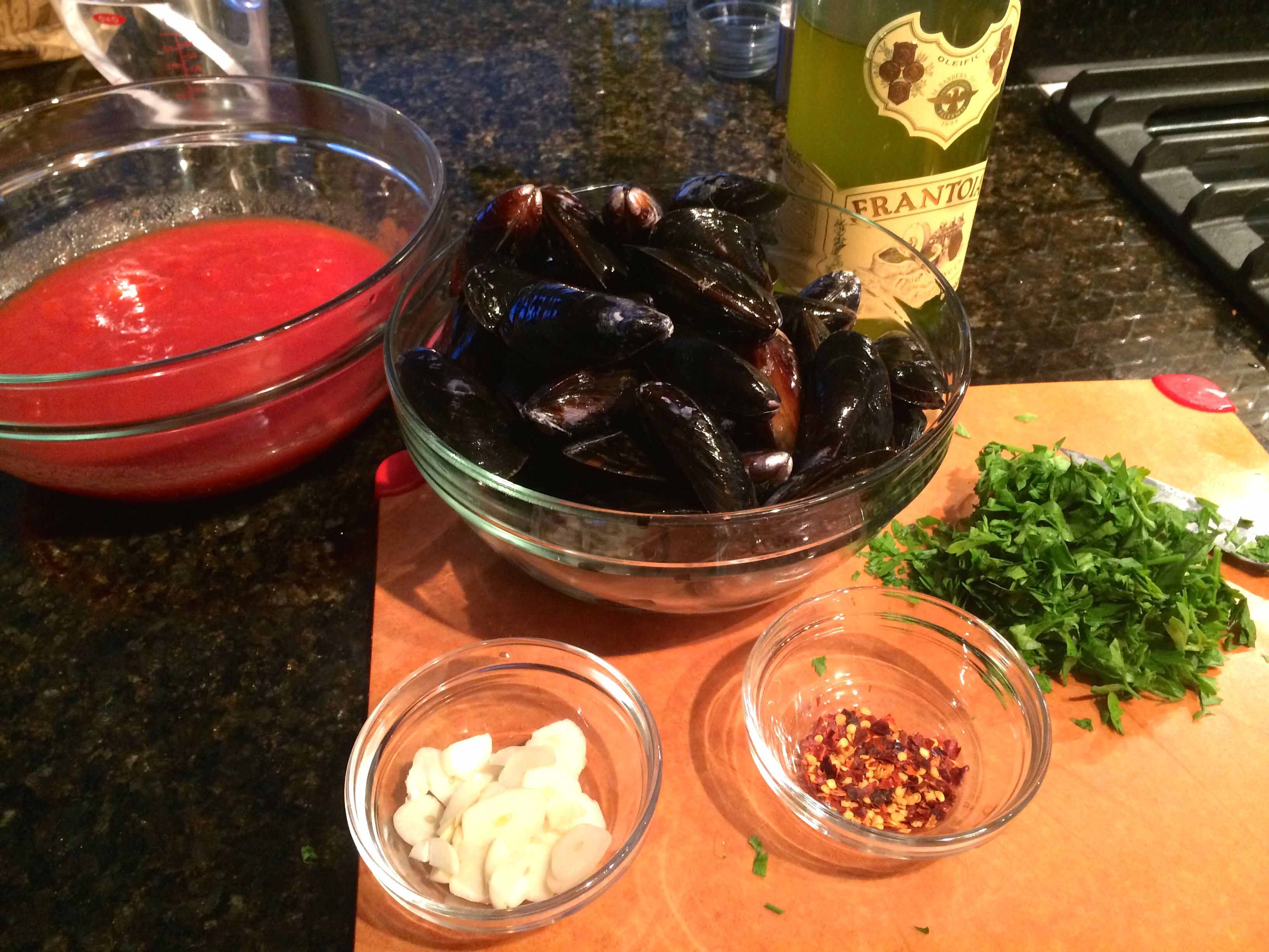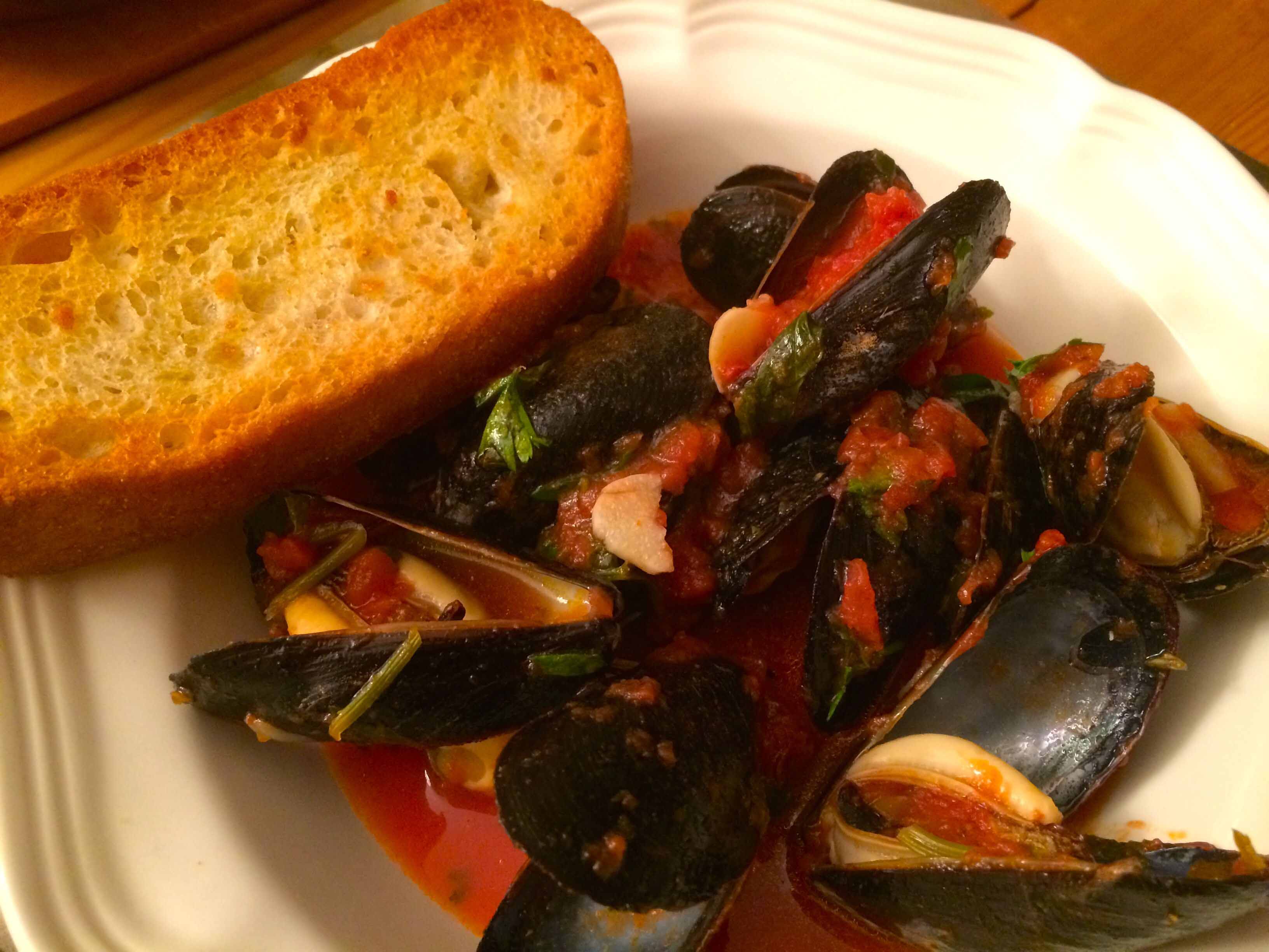 Growing up, the only mussels I ate were served southern-Italian style, sauced with a hot marinara and accompanied by a thick bread biscotto to sop up the condiment. Today, it’s a dish I make quite often at home.